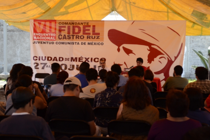 CIUDAD DE MÉXICO, 31 de julio de 2017.- En el marco del VII Encuentro Nacional de la Juventud Comunista de México, Hawary Ahmed Moulud, Primer Secretario de la Embajada de la República Árabe Saharaui Democrática dio una plática a los jóvenes mexicanos acerca de la resistencia de su pueblo y las constantes provocaciones marroquíes,según nota de prensa de la Embajada de la RASD en México.