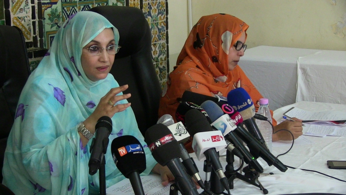 En la conferencia de prensa, ofrecida en la embajada saharaui en Argelia y al que asistieron medios de prensa argelinos acompaña a la activista saharaui la Secretaria General de la Unión Nacional de Mujeres Saharauis,Sra Fatma Mehdi.