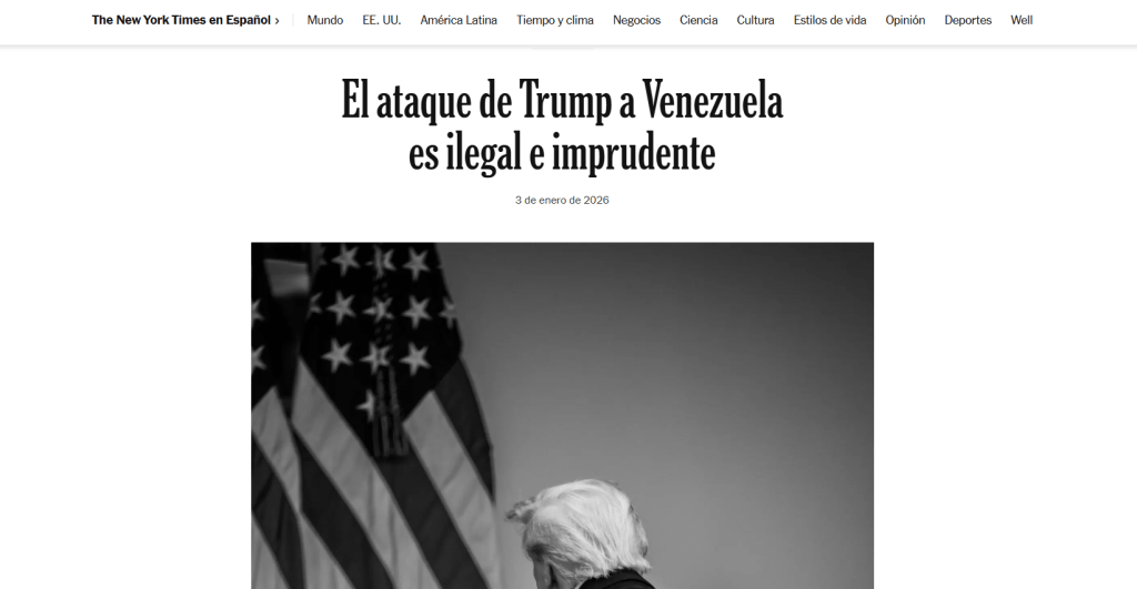 Al parecer, Venezuela se ha convertido en el primer país sometido a este imperialismo de los últimos tiempos, y representa un enfoque peligroso e ilegal del lugar de Estados Unidos en el mundo. Al proceder sin ningún atisbo de legitimidad internacional, autoridad legal válida o respaldo nacional, Trump se arriesga a dar una justificación a los autoritarios de China, Rusia y otros países que quieren dominar a sus propios vecinos. De forma más inmediata, amenaza con reproducir la arrogancia estadounidense que condujo a la invasión de Irak en 2003.