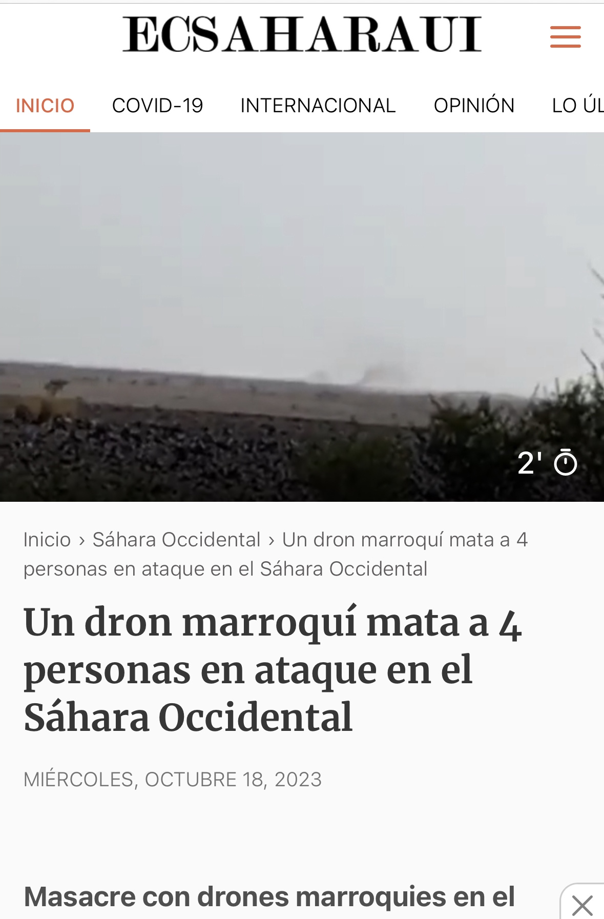 Madrid (ESC).- Marruecos retoma los ataques con drones contra los saharauis. En las últimos dos días, drones marroquíes han asesinado a cuatro personas en el sur del Sáhara Occidental.